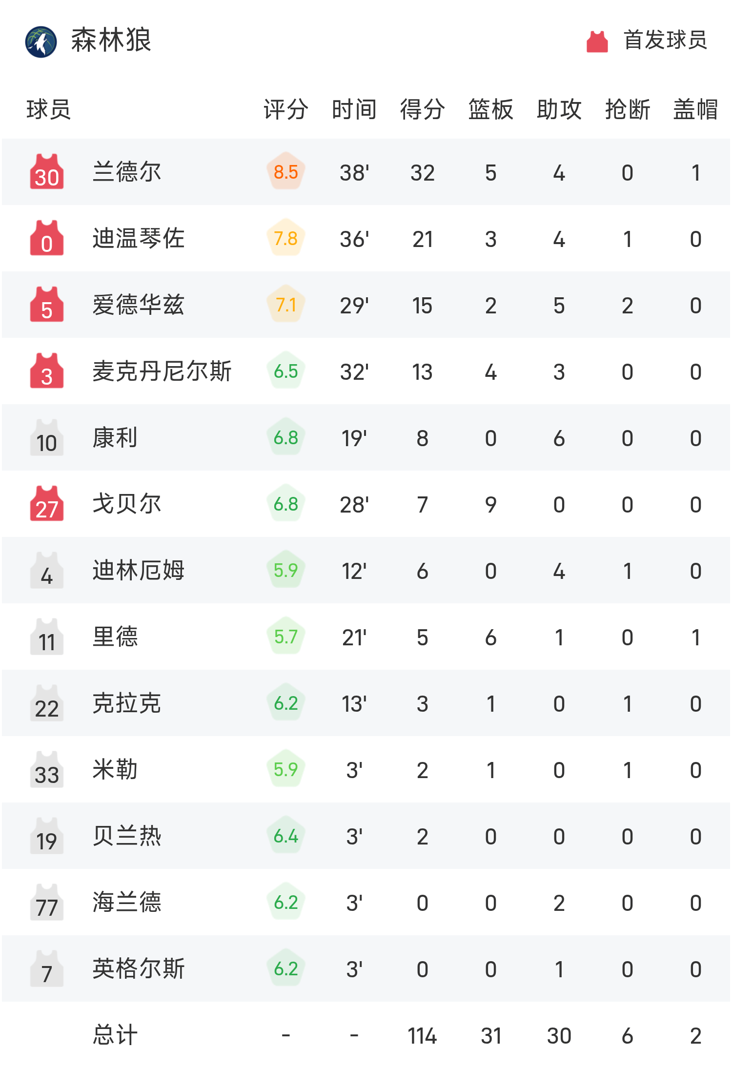 双方全场战罢,尼克斯137-114战胜森林狼。