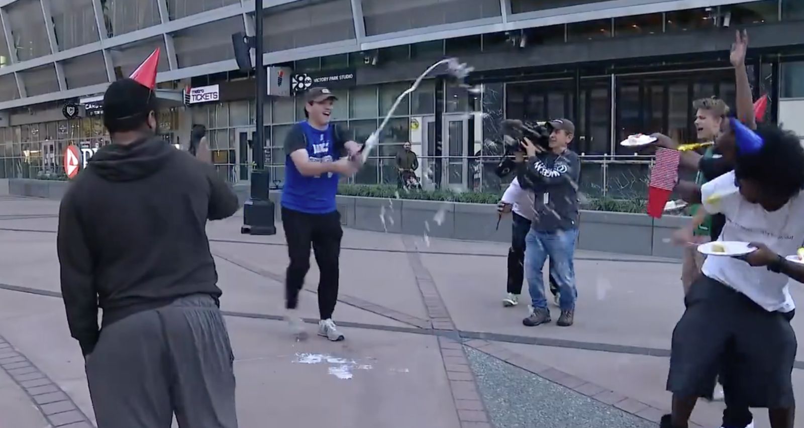 得知哈里森被解雇后,多位东契奇球迷来到独行侠主队场外庆祝,大家分发蛋糕并佩戴生日帽,甚至有球迷专门开了一瓶香槟庆祝,并大声呼喊:“他终于走了!”