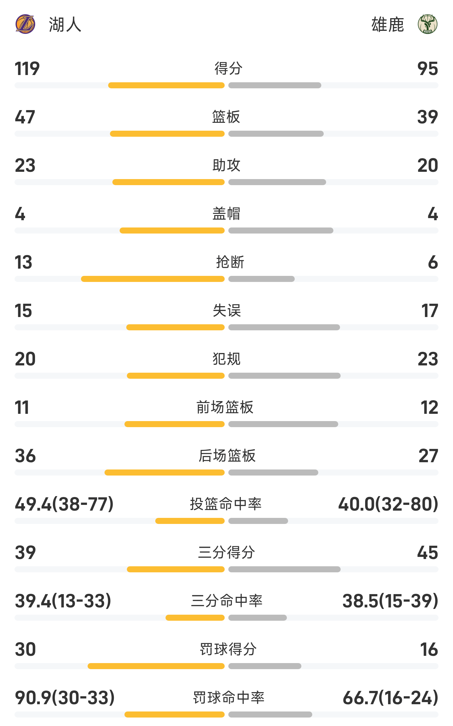 NBA战报:东契奇41分9板6助,字母哥32分,湖人119-95雄鹿
