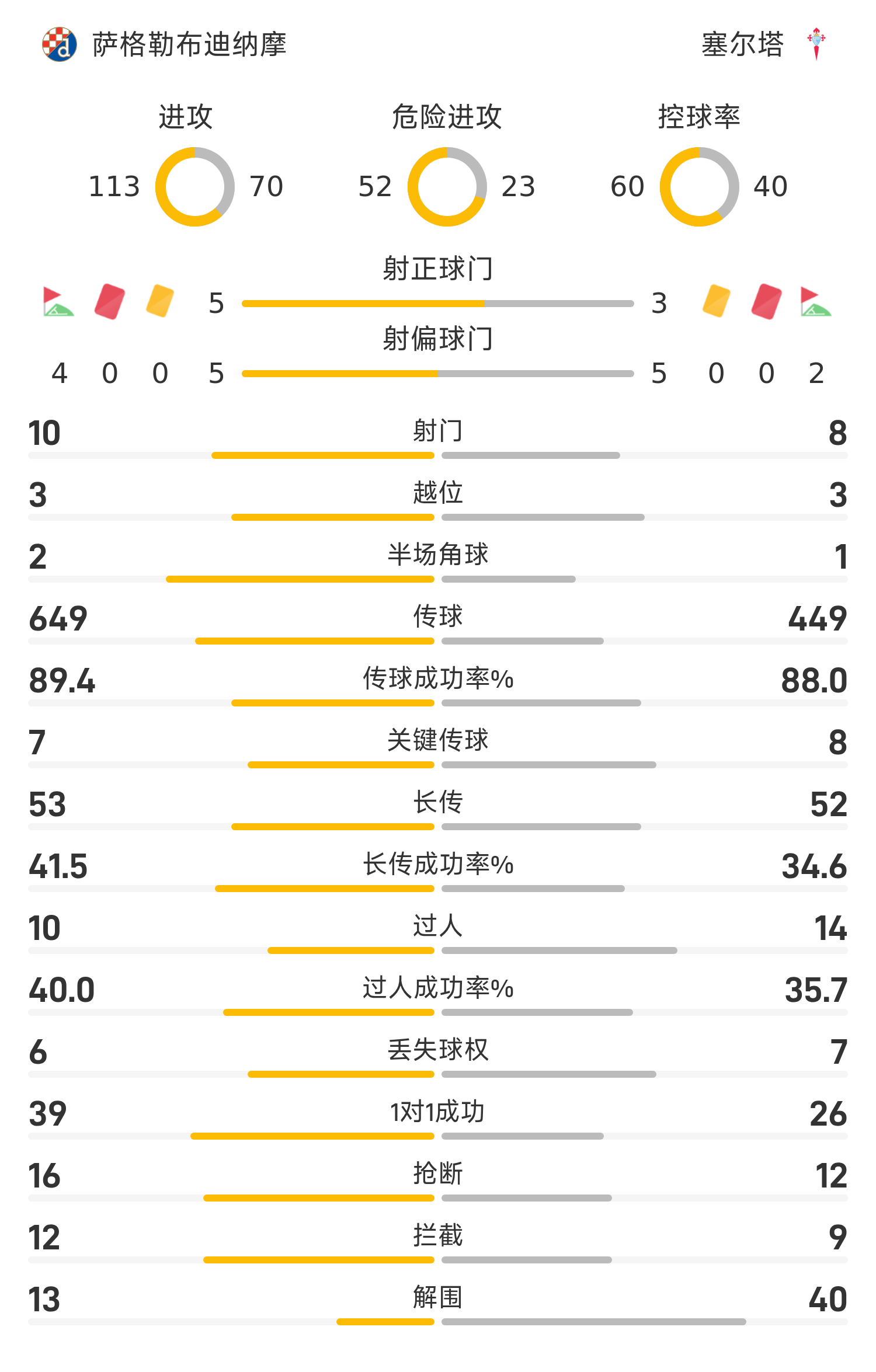 萨格勒布迪纳摩首发阵容:33-尼维斯蒂奇、28-凯瑟林(46’71-巴克拉)、26-麦肯纳、3-戈达(46’22-温洛夫)、36-多明格斯、8-扎伊茨(78’6-比利亚尔)、27-米西奇、77-柳比西奇(59’7-斯托伊科维奇)、17-库列诺维奇(59’9-贝尔乔)、11-霍查、21-利西卡