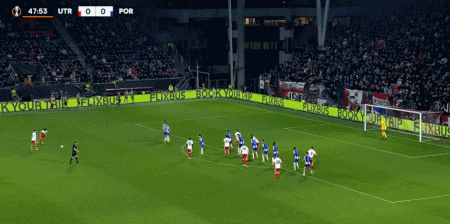 75’维加弧顶位置起脚重炮轰门,皮球被守门员单手托出