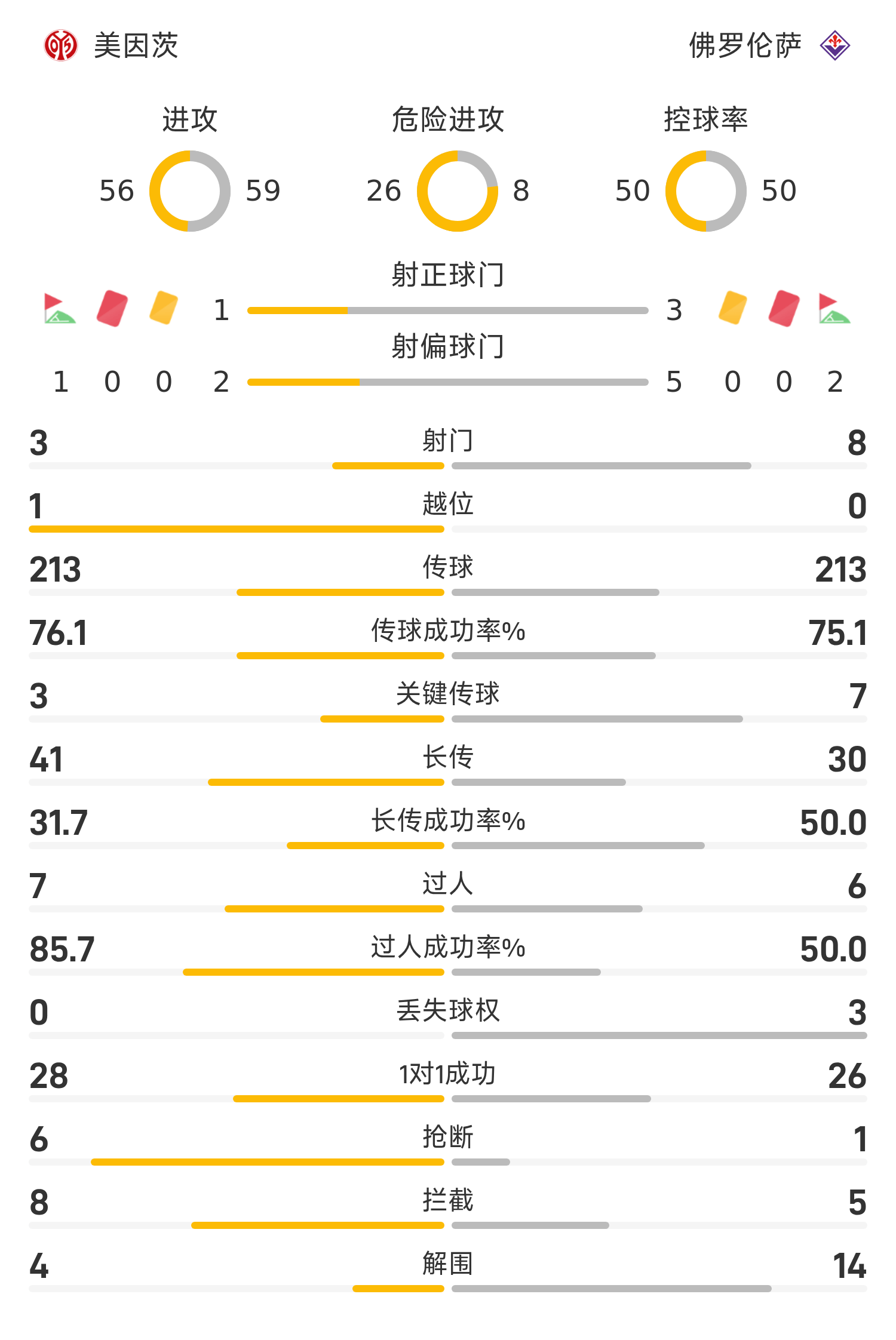10’维皮尔三秒区顶球攻门,佛罗伦萨守门员将球没收