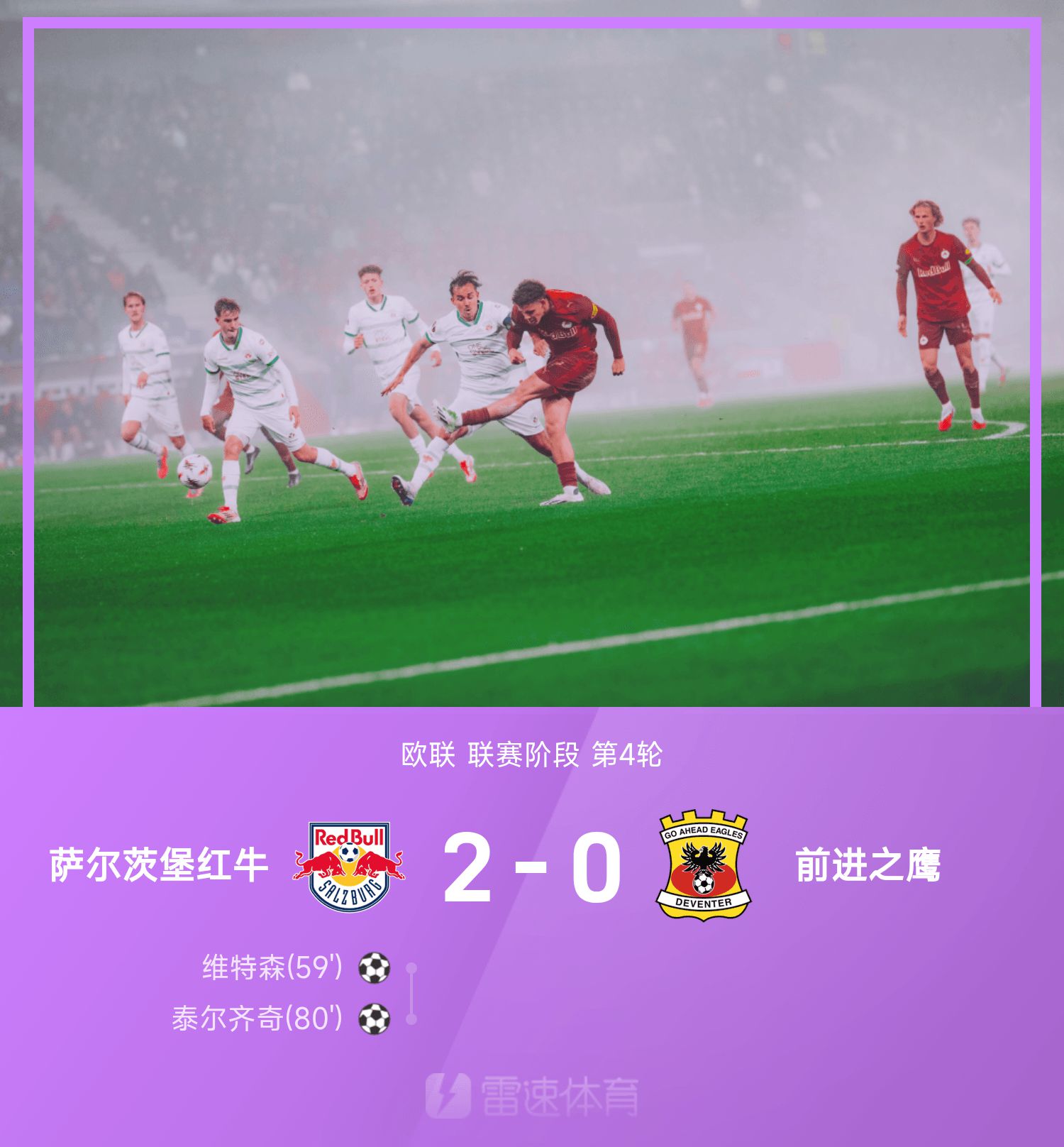 欧联战报:泰尔齐奇无解世界波,萨尔茨堡红牛2-0前进之鹰