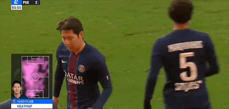 65’KK7、李刚仁三秒区内两连击,巴黎后卫帕乔化身内鬼协助清球