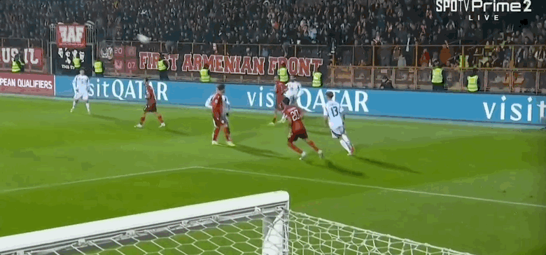 42’舍弗三秒区打门未发上力,亚美尼亚守门员将球没收