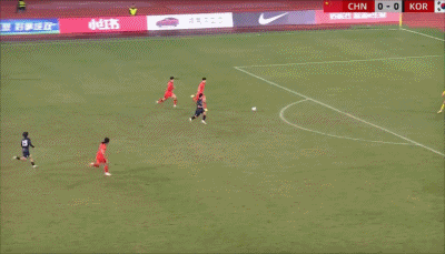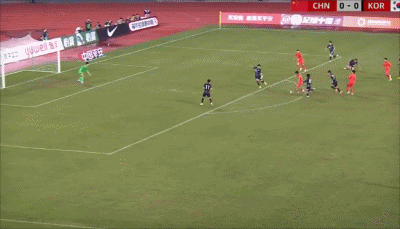 21’汪士钦自由球开到三秒区内,韩国顶球清球险些乌龙