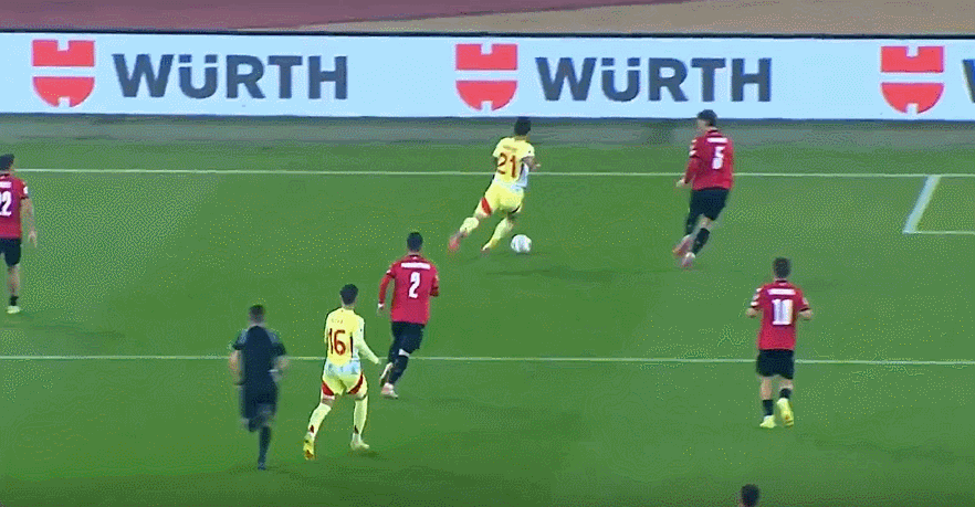 45+2’波罗传禁区,奥亚萨瓦尔门前迎球推远角,马马尔达什维利将球挡出