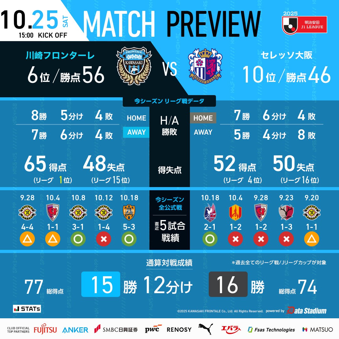6686体育app10月25日讯 日职联第35轮,大阪樱花主队场迎战川崎前锋。