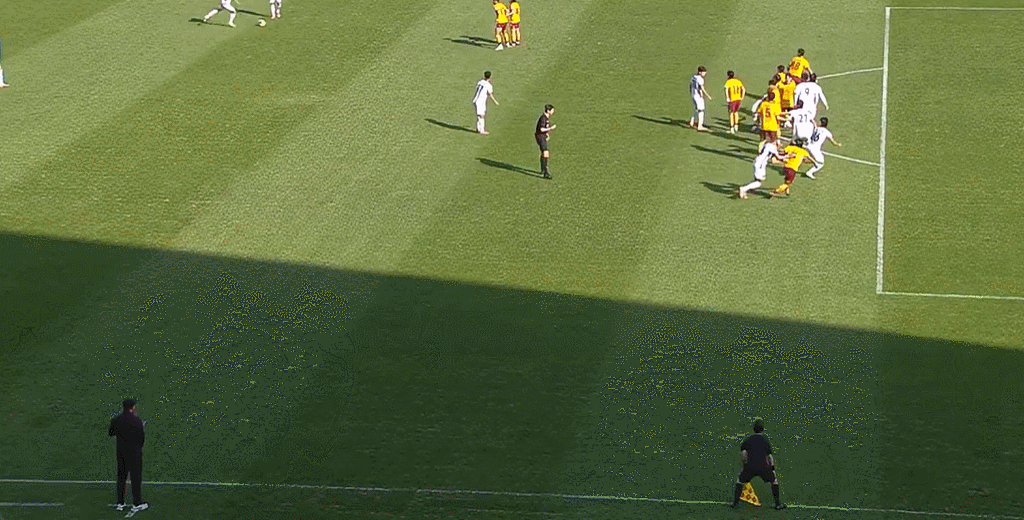 45’李昌龙门前挡射门雷斯打门,皮球稍稍偏出立柱险自摆乌龙